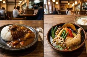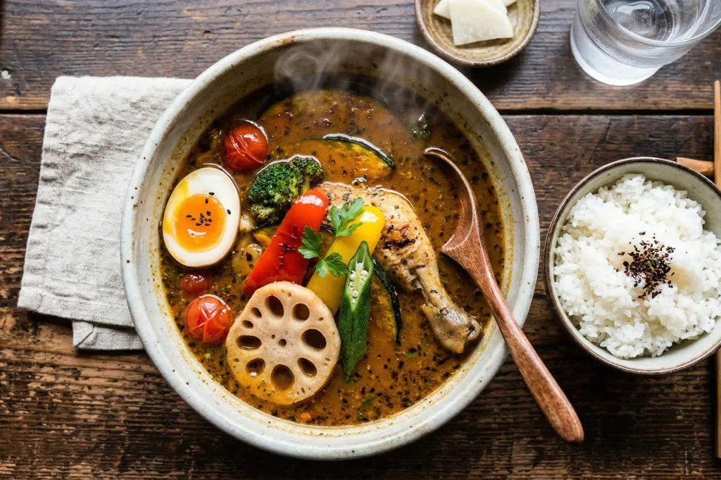 In Sapporo, the ultimate comfort food is soup curry. This beloved dish features a light, curry-flavoured soup base made with slow-simmered chicken broth, complex curry powder, and a delicate balance of garam masala. Unlike typical thick Japanese curry, this watery, aromatic broth is served with steamed rice on the side. Ending your night with such a restorative meal is the perfect way to settle your stomach. The vibrant spices and deep, warming umami provide a beautiful conclusion to an evening of shared plates and flowing drinks.