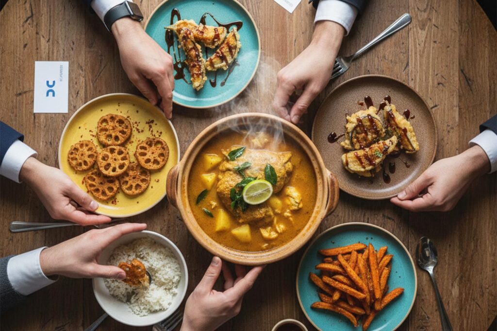 Traditional after work events can sometimes feel clinical or forced, especially when they are labelled as “mandatory fun.” In contrast, an izakaya-style atmosphere encourages organic interaction. When sharing a bowl of aromatic soup curry or passing around plates of vibrant, deep-fried vegetables like lotus root and aubergine, the conversation flows differently. You are not just coworkers discussing a project. You are people sharing a sensory experience.